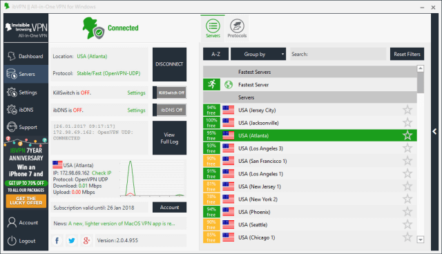 • 易于使用,只需要轻点一个按钮就可以连接最快的VPN服务器。